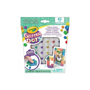 chiaccia per creare arte scintillante e design scintillanti con punti glitter nei colori che preferisci. Crea su pagine da colorare, altri playset Glitter Dots, legno, feltro, cartapesta, tessuti, polistirolo e molto altro! Ogni Glitter Dot è rivestito in modo speciale per aiutare a mantenere i glitter contenuti nel punto e non sulle tue mani. Grandi bambini abeti che amano l'arte e la lavorazione dei glitter.