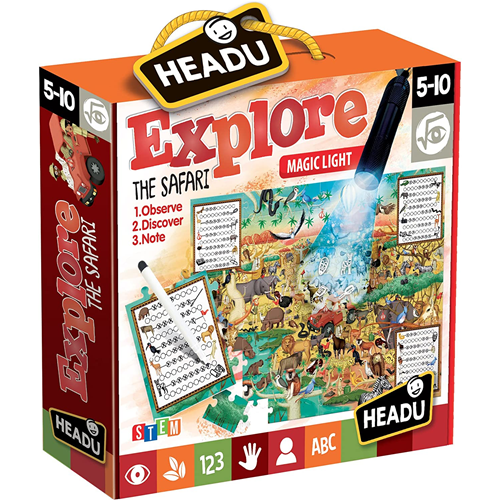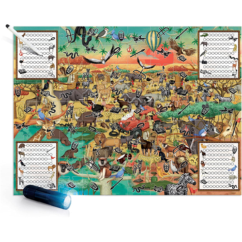 Contenuto: puzzle 60 x 44 cm da 70 pezzi; pennarello segna e cancella; torcia uv (funziona con 3 pile aaa da 1,5 v non incluse)